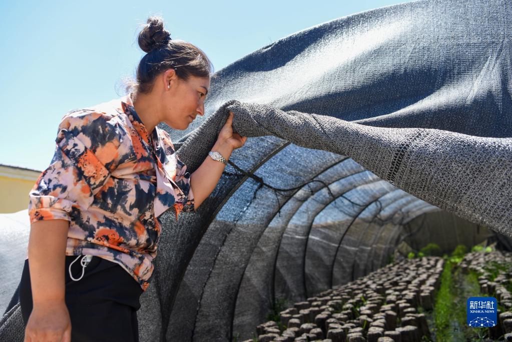 在新疆烏什縣依麻木鎮(zhèn),在新疆維吾爾自治區(qū)黨委組織部、老干部局駐托萬(wàn)克麥蓋提村“訪民情惠民生聚民心”工作隊(duì)的幫助下,不少村民通過(guò)培植木耳增收致富(2022年6月7日攝)。新華社記者 丁磊 攝