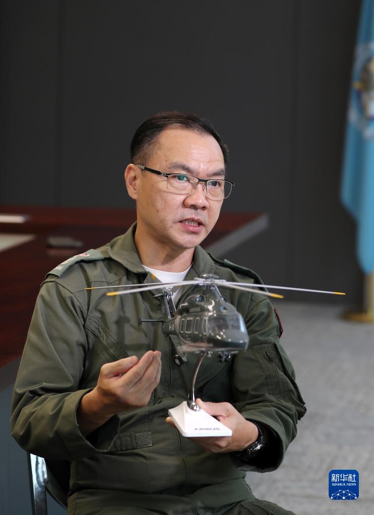 香港特區(qū)政府飛行服務(wù)隊總監(jiān)胡偉雄接受記者采訪(6月20日攝)。新華社記者 李鋼 攝