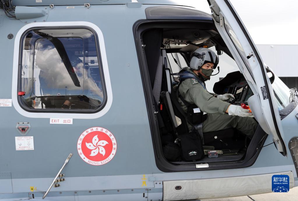 香港特區(qū)政府飛行服務(wù)隊領(lǐng)航機長葉偉雄準(zhǔn)備訓(xùn)練(6月23日攝)。新華社記者 李鋼 攝