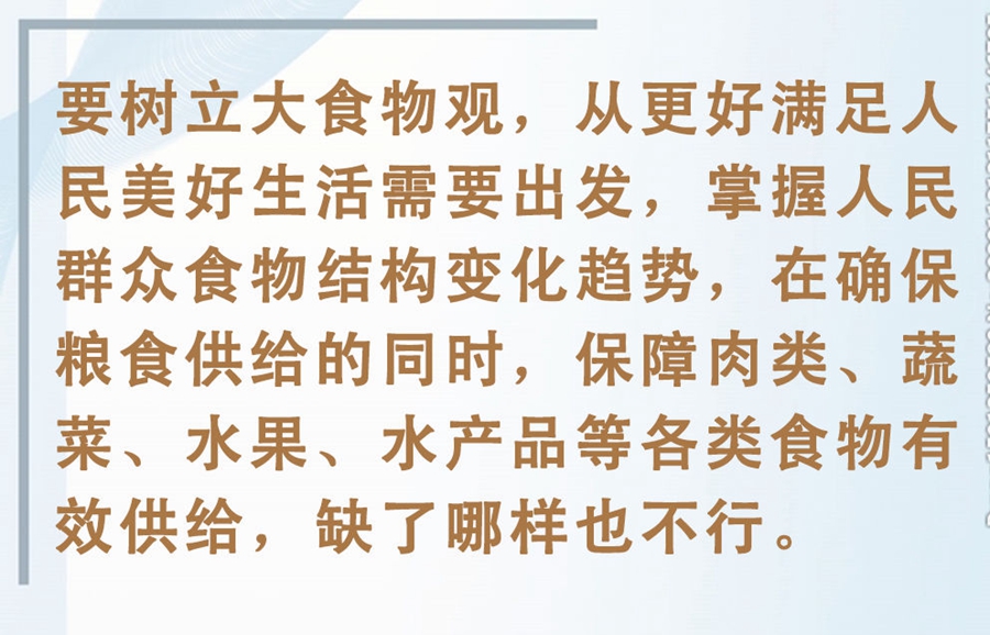 今年全國(guó)兩會(huì)上,習(xí)近平總書(shū)記提出“要樹(shù)立大食物觀”。