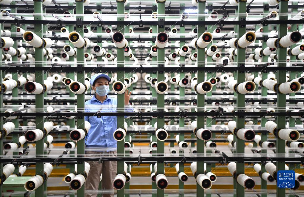 中國(guó)平煤神馬集團(tuán)平頂山神馬簾子布發(fā)展有限公司的員工在查看尼龍絲道(2019年3月20日攝)新華社記者 李嘉南 攝