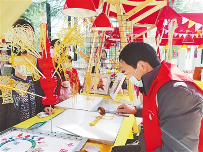 在離鄭州非遺集市不遠的一片草地上,一位身穿黃棉襖的小女孩正在認(rèn)真捏著面塑。聊天中,記者了解到,她叫周熙晴,今年九歲,在中原區(qū)特色實驗小學(xué)上學(xué),平時特別喜歡民間藝術(shù)捏面人,趁著放假,她也在二砂文創(chuàng)園擺了個小桌子,現(xiàn)場為大家表演捏面人。周熙晴的爸爸告訴記者,看到春節(jié)期間這里有熱鬧的非遺集市,女兒也想現(xiàn)場展示一下技藝。“鄭州非物質(zhì)文化遺產(chǎn)需要一代代傳承下去。我們做家長的,特別支持孩子學(xué)習(xí)這些傳統(tǒng)技藝。希望鄭州非遺在傳承中創(chuàng)新,在創(chuàng)新中發(fā)揚光大!”本報記者 成燕 文\圖