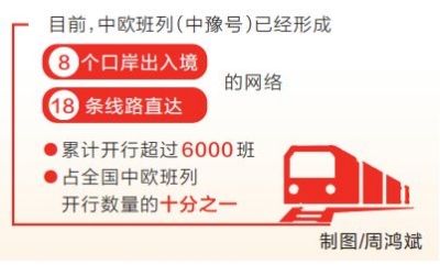 大通道串起大世界。目前,中歐班列(中豫號)已經(jīng)形成“8個口岸出入境、18條線路直達”的網(wǎng)絡,累計開行超過6000班、占全國中歐班列開行數(shù)量的十分之一。