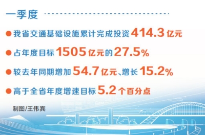 這是我省全力推動交通重點(diǎn)項(xiàng)目建設(shè)加速提質(zhì)增效的一個縮影。記者從當(dāng)天召開的河南省交通運(yùn)輸經(jīng)濟(jì)運(yùn)行調(diào)度會上獲悉,今年一季度,我省交通基礎(chǔ)設(shè)施累計完成投資414.3億元,占年度目標(biāo)1505億元的27.5%,較去年同期增加54.7億元、增長15.2%,高于全省年度增速目標(biāo)5.2個百分點(diǎn)。