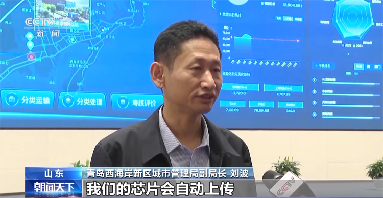青島西海岸新區(qū)城市管理局副局長 劉波:如果說是存在了混裝的問題的話,我們的芯片會(huì)自動(dòng)上傳。平臺(tái)收到芯片的信息之后,自動(dòng)判別是否是混運(yùn),如果是混運(yùn)的話,我們的平臺(tái)可以按照有關(guān)的規(guī)定自動(dòng)出具整改通知書,發(fā)到運(yùn)輸單位。