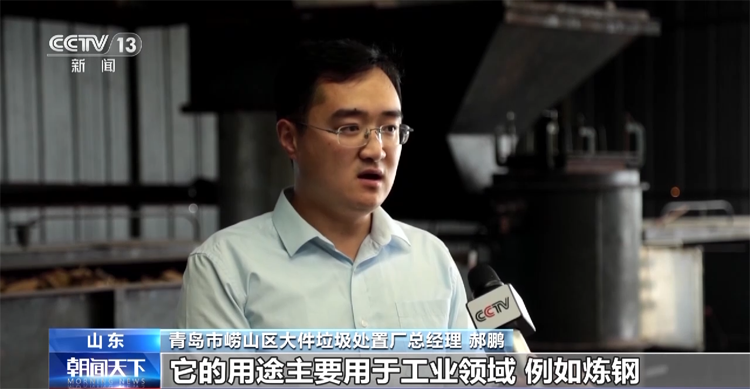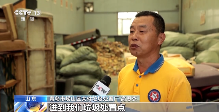 青島市嶗山區(qū)大件垃圾處置廠 高思杰:大件垃圾、沙發(fā)家具什么的,進(jìn)到我們垃圾處置點(diǎn),通過人工分揀,再通過設(shè)備的粉碎。粉碎完了以后,木頭我們揀出來做再利用,海綿和布再送到垃圾轉(zhuǎn)運(yùn)站去,做無害化處理。