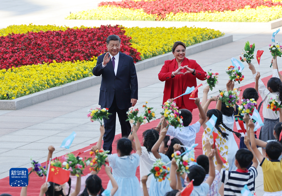 6月12日下午,國(guó)家主席習(xí)近平在北京人民大會(huì)堂同來(lái)華進(jìn)行國(guó)事訪問(wèn)的洪都拉斯總統(tǒng)卡斯特羅舉行會(huì)談。這是會(huì)談前,習(xí)近平在人民大會(huì)堂東門外廣場(chǎng)為卡斯特羅舉行歡迎儀式。新華社記者 黃敬文 攝