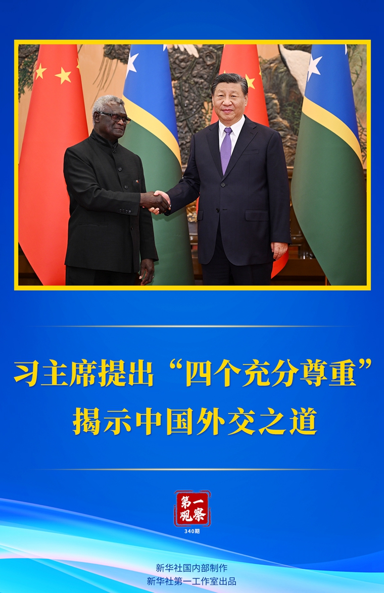7月10日下午,國家主席習(xí)近平在人民大會(huì)堂會(huì)見來華進(jìn)行正式訪問的所羅門群島總理索加瓦雷。會(huì)見中,習(xí)近平主席指出,中國的太平洋島國政策秉持“四個(gè)充分尊重”——
