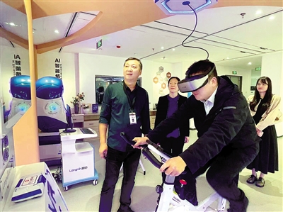 職工在市職工文體中心幸福體驗館體驗“移步換景”設(shè)備