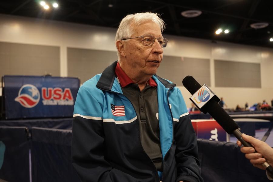 ??2023年12月16日,中美“乒乓外交”親歷者戴爾·斯威里斯在2023年美國(guó)乒乓球公開(kāi)賽老年組比賽間隙接受新華社記者專訪。
