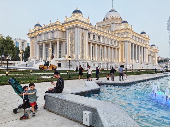 ??在總統(tǒng)府正門前平臺駐足,拉赫蒙總統(tǒng)指向不遠(yuǎn)處中國援建的議會大樓和政府大樓,告訴習(xí)近平主席:“議會大樓前廣場已成為市民們休閑避暑的好去處,是杜尚別的新打卡地?!?/span>